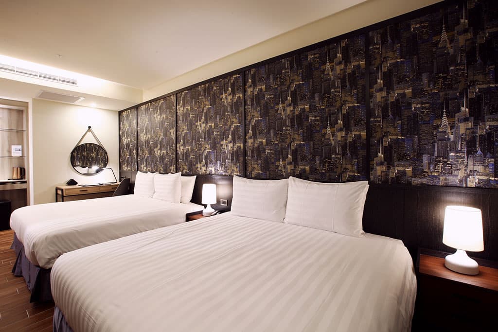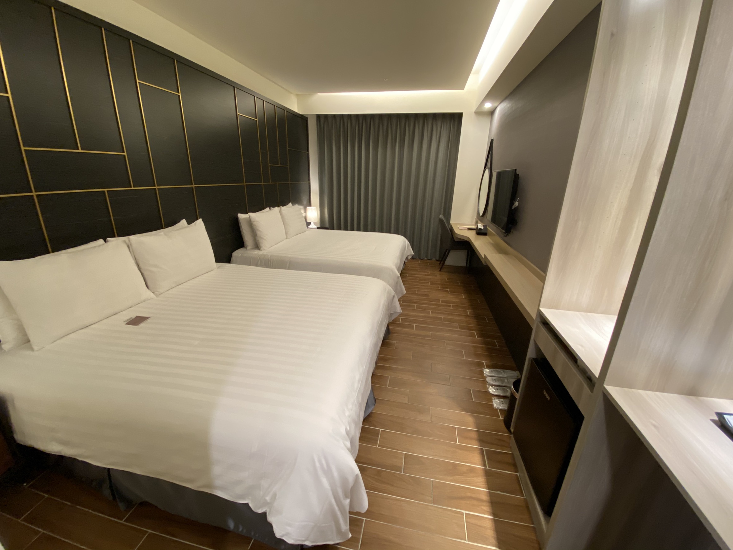 配置有三張標準雙人床,利於團體出遊、商務出差的安排,或是家裡已有大小孩的家庭也很適合安排入住體驗。
