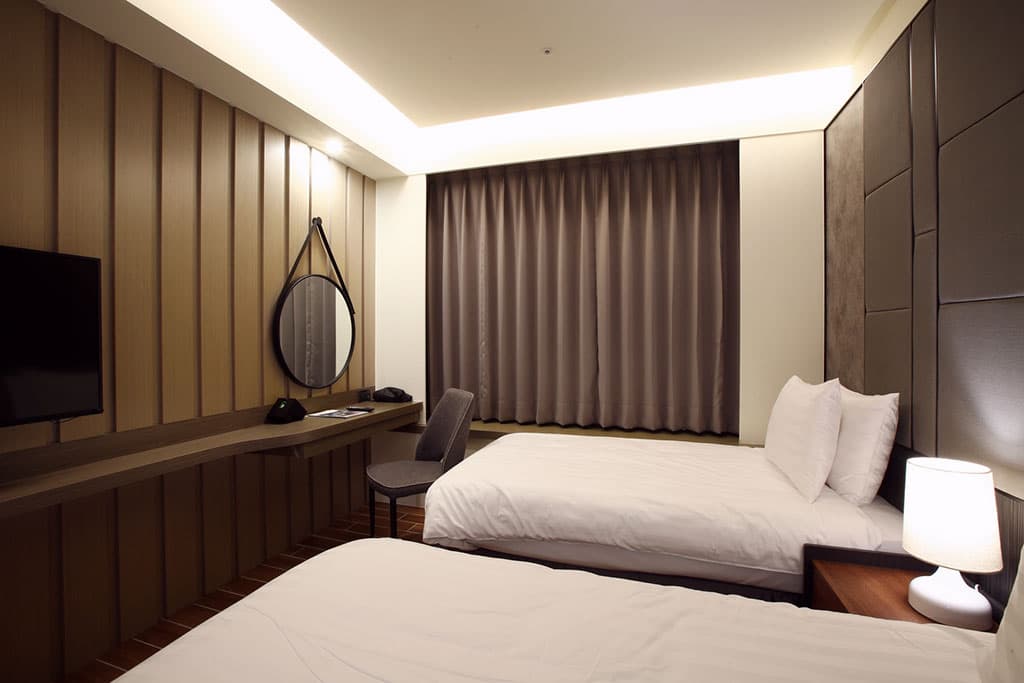精緻雙人房簡約的設計風格,床型為二張單人床,利於團體出遊或是商務出差的安排。